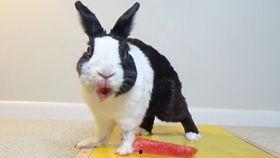 2. 瓜皮大作战:这张图片里的兔子,竟然把西瓜皮当成了玩具,一边玩一边笑,真是太可爱了。
